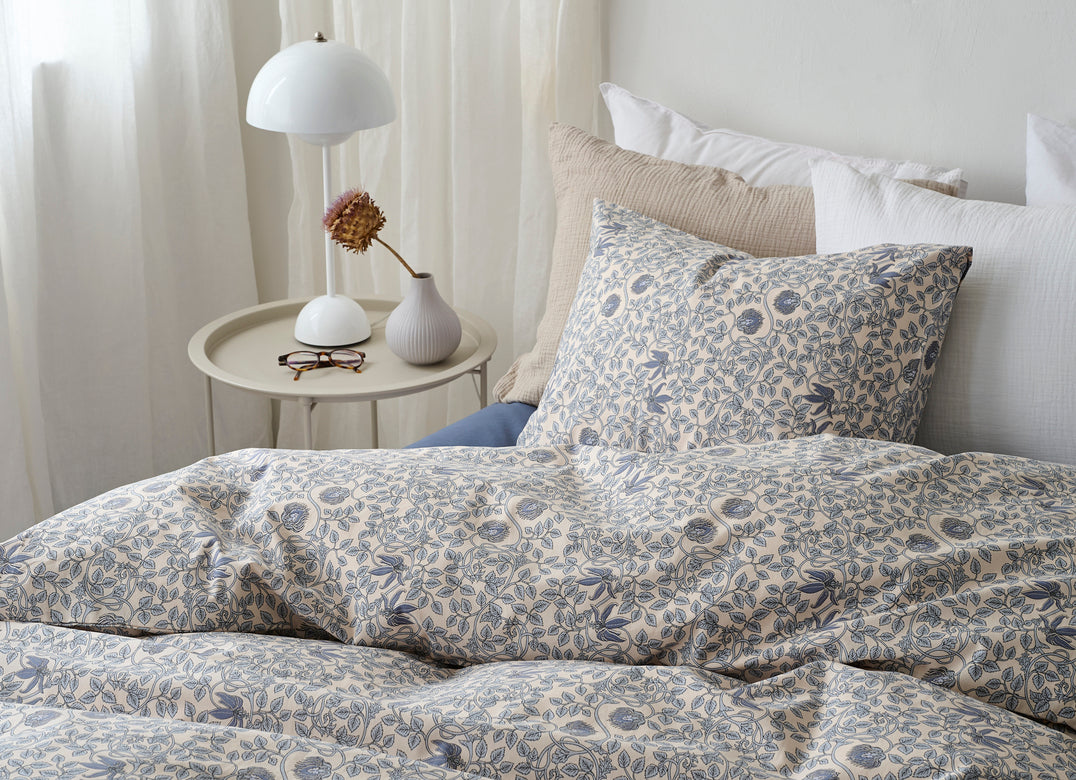 Bäddset bestående av ett örngott och ett påslakan. Bäddsetet har ett tryckt mönster och är tillverkat i mjuk och skön bomullskvalitet.