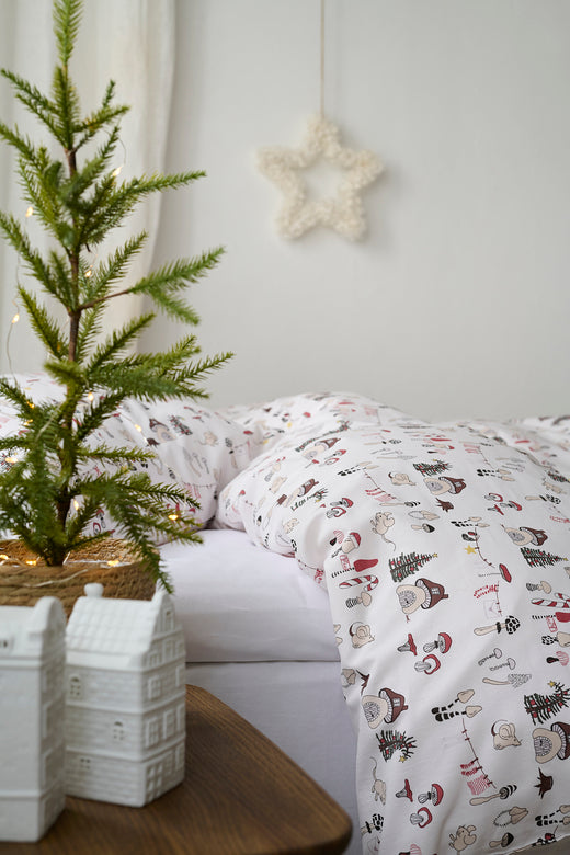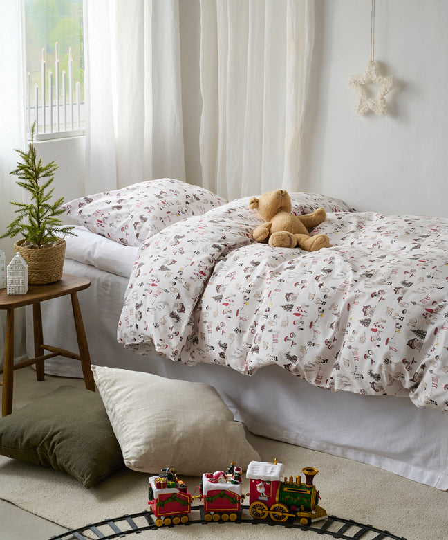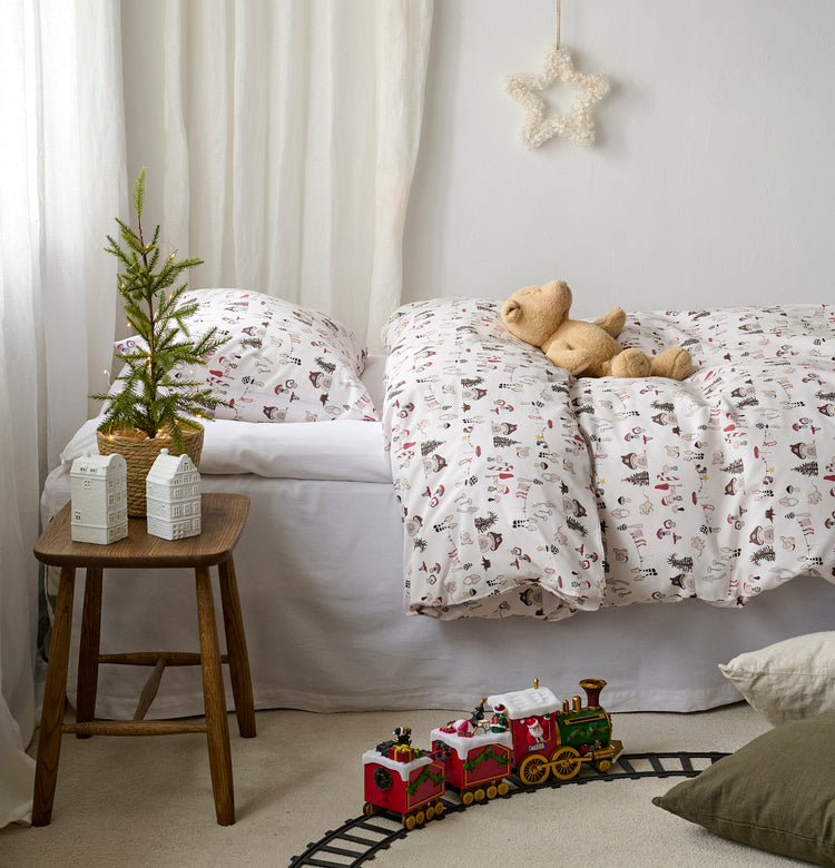 Bäddset bestående av ett örngott och ett påslakan. Bäddsetet har ett tryckt mönster och är tillverkat i mjuk och skön bomullskvalitet.