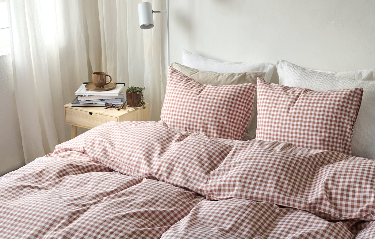 Egenskaper: Påslakan med hörnhål, örngott med kuvertöppning