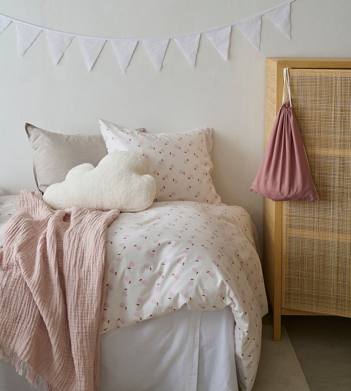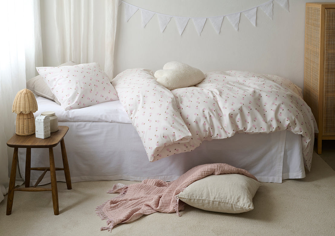 Bäddset bestående av ett örngott och ett påslakan. Bäddsetet har ett tryckt mönster och är tillverkat i mjuk och skön bomullskvalitet.