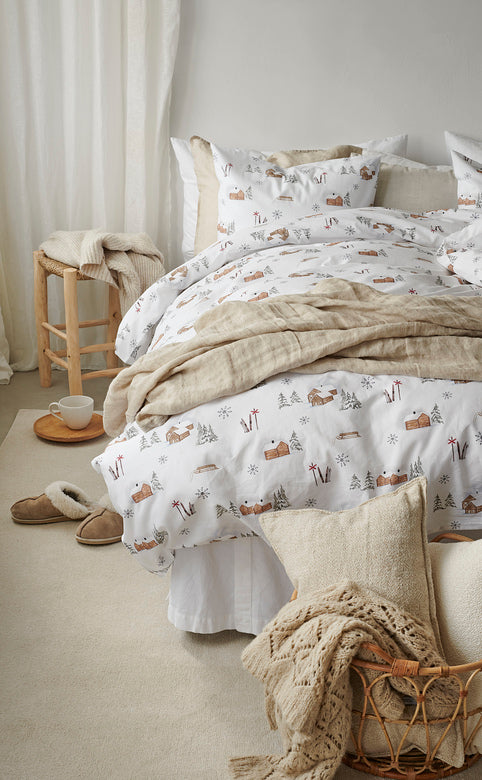 Bäddset bestående av ett örngott och ett påslakan. Bäddsetet har ett tryckt mönster och är tillverkat i mjuk och skön bomullskvalitet.