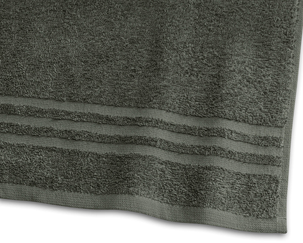 Borganäs Basic frotté är en slät öglefrotté. Handduken har hängare på kortsidorna samt ett klassiskt mönster i form av vävda bårder nedtill. Basic frotté har god absorptionsförmåga och finns i flera olika storlekar, från gästhandduk till badlakan.