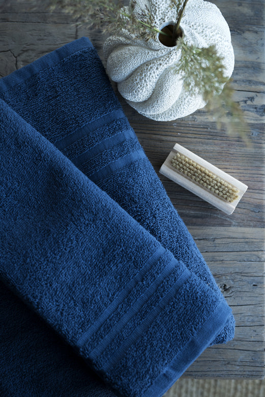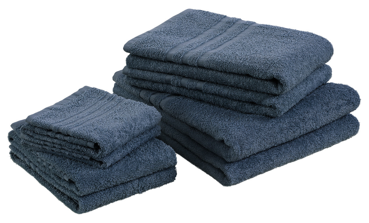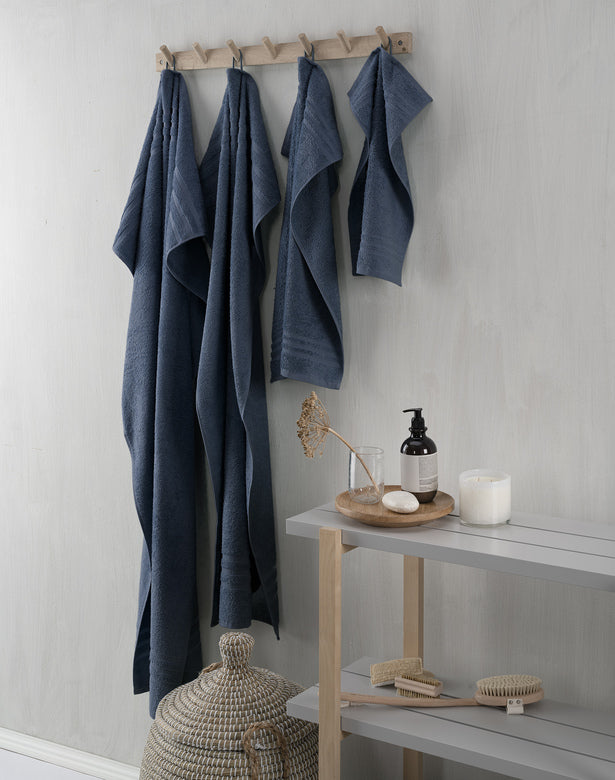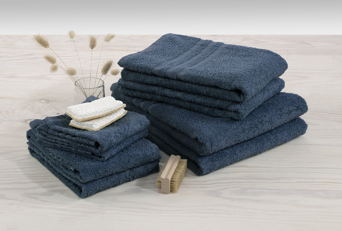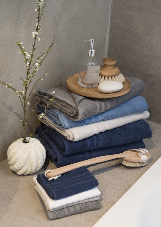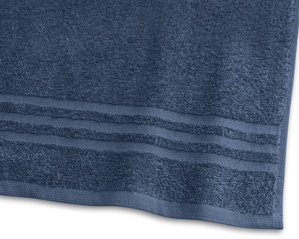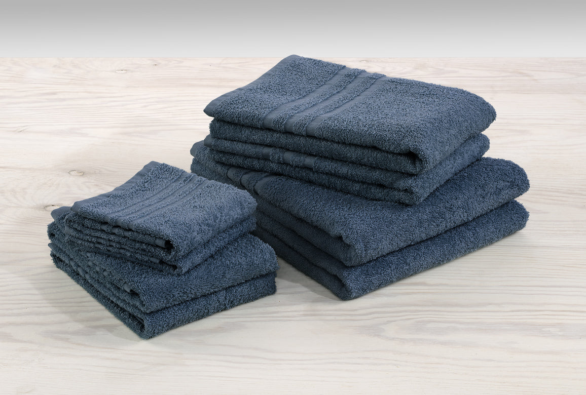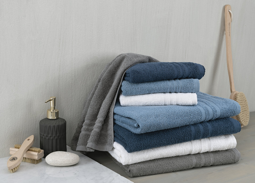 Borganäs Basic frotté är en slät öglefrotté. Handduken har hängare på kortsidorna samt ett klassiskt mönster i form av vävda bårder nedtill. Basic frotté har god absorptionsförmåga och finns i flera olika storlekar, från gästhandduk till badlakan.