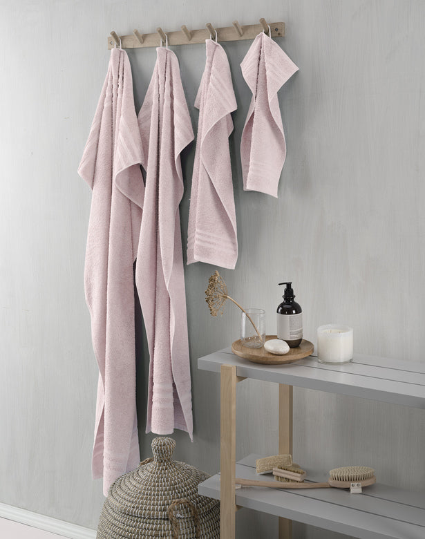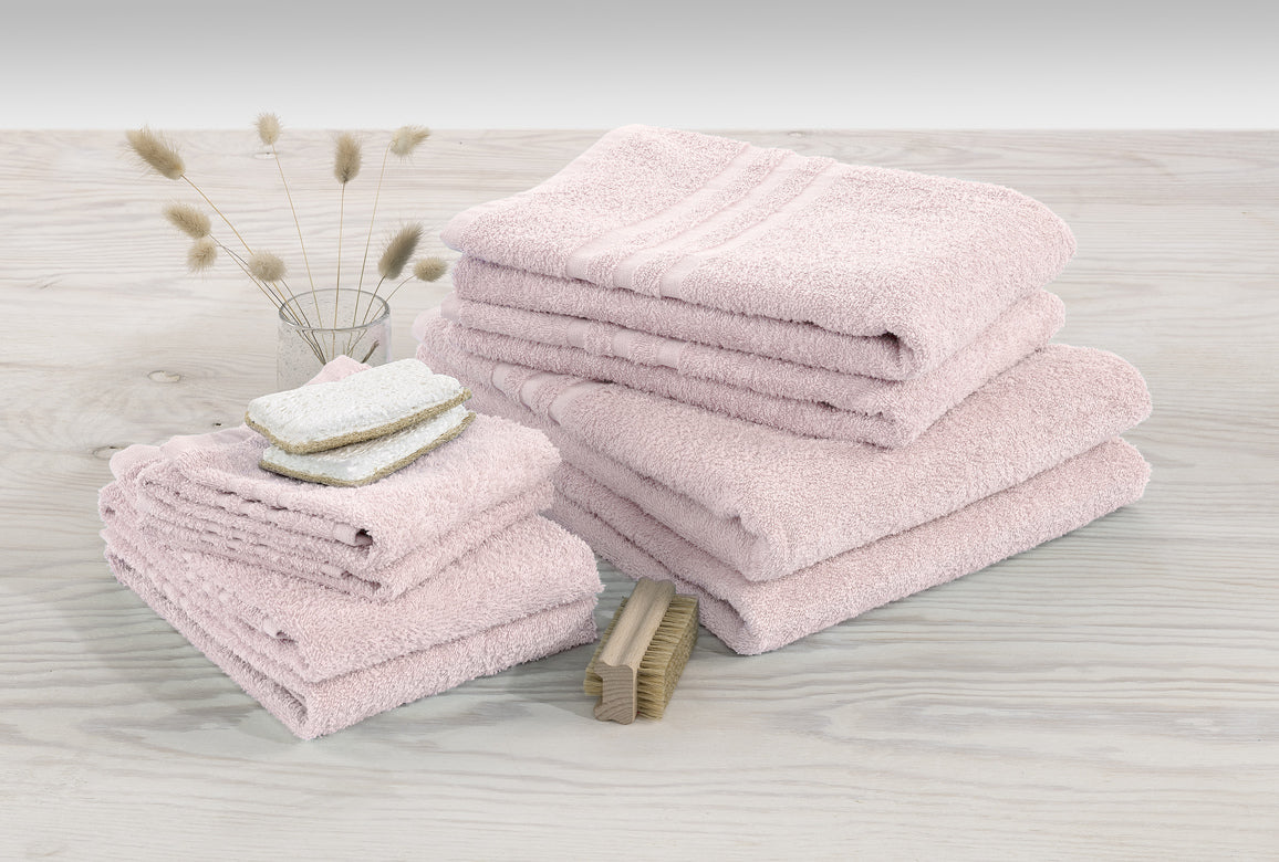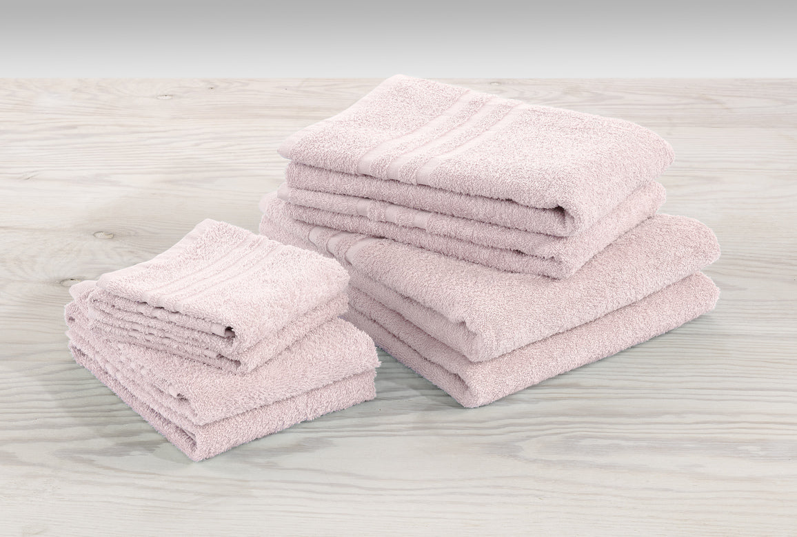 Borganäs Basic frotté är en slät öglefrotté. Handduken har hängare på kortsidorna samt ett klassiskt mönster i form av vävda bårder nedtill. Basic frotté har god absorptionsförmåga och finns i flera olika storlekar, från gästhandduk till badlakan.