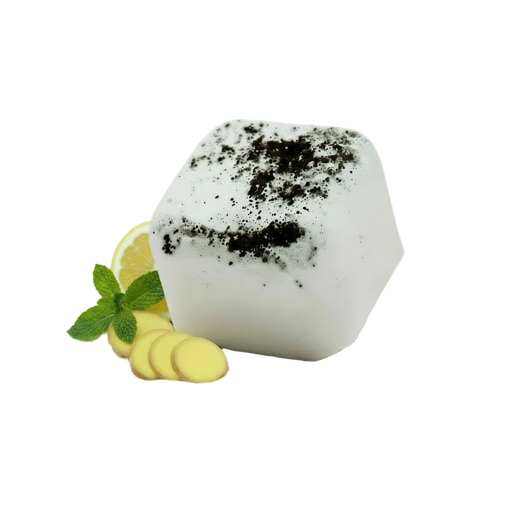 Baksmälla är en aromaterapisk duschtablett framtagen för dagar då huvudet känns tungt och energin är låg. Den är berikad med eteriska oljor från ingefära, pepparmynta och citron, tillsammans med malet kaffe som ger ett rått, naturligt uttryck.